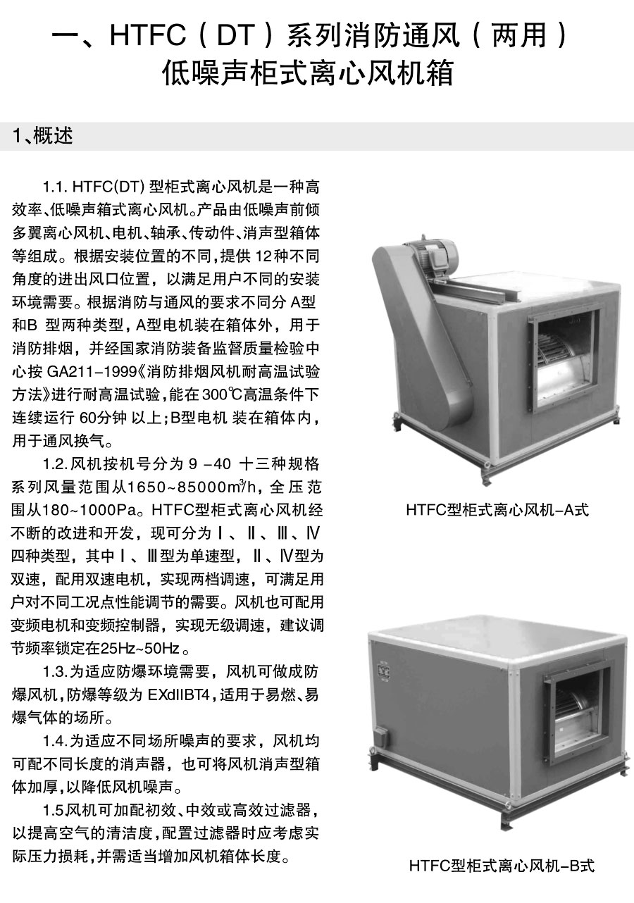 > HTFC(DT)系列消防通风(两用)低噪声柜式离心风机箱