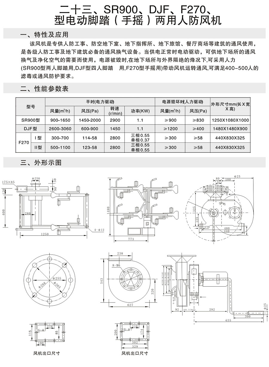 + SR900、DJF、F270型电动脚踏(手摇)两用人防风机